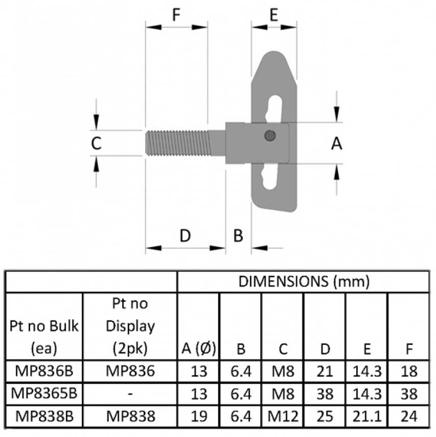 Complete with M12 nyloc nut & washer